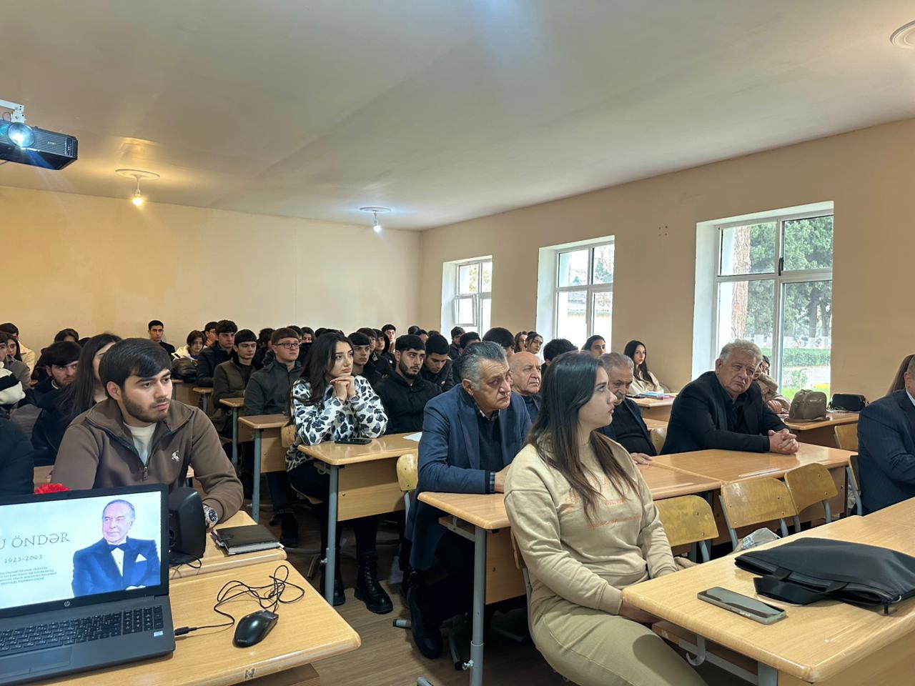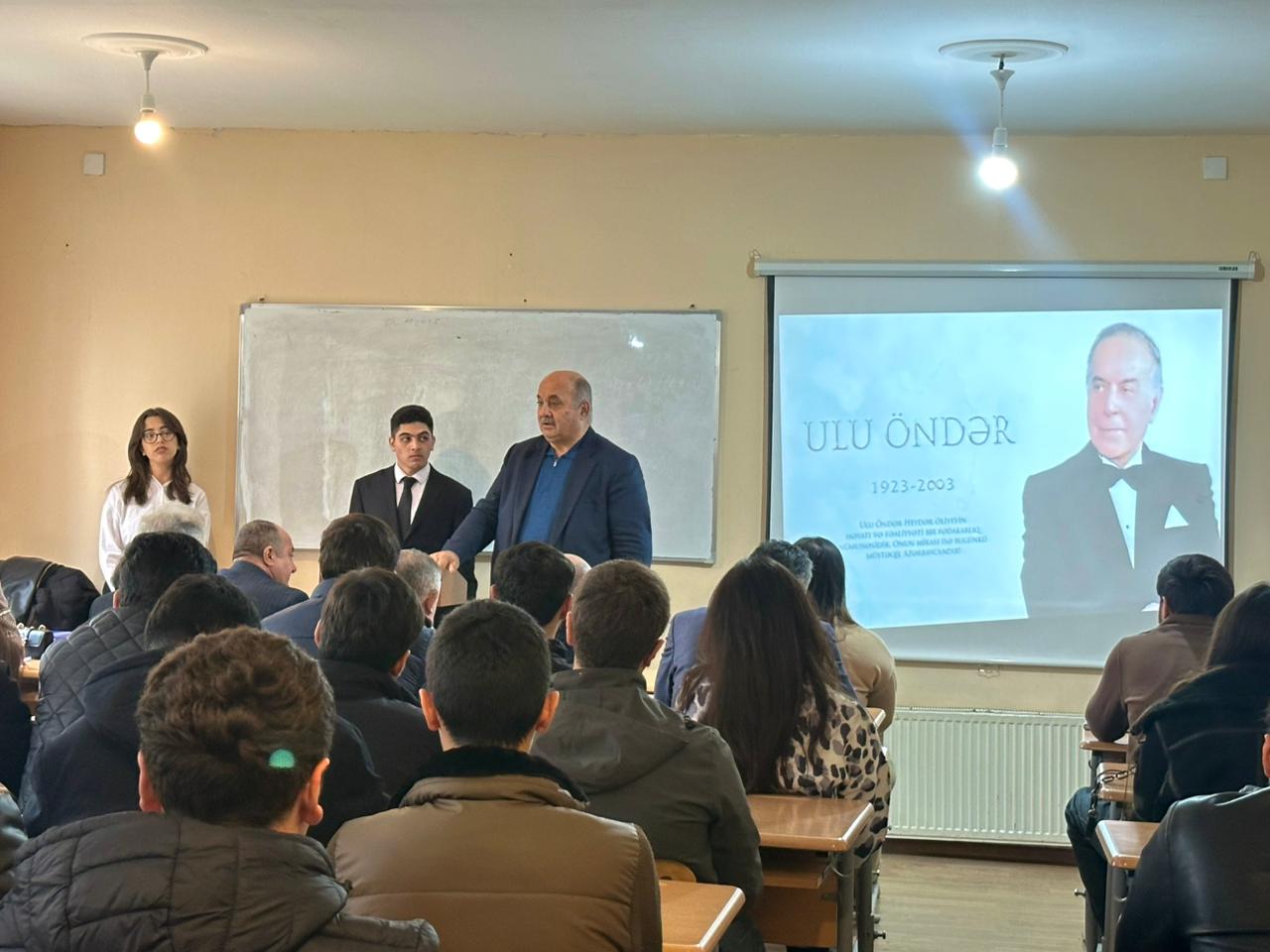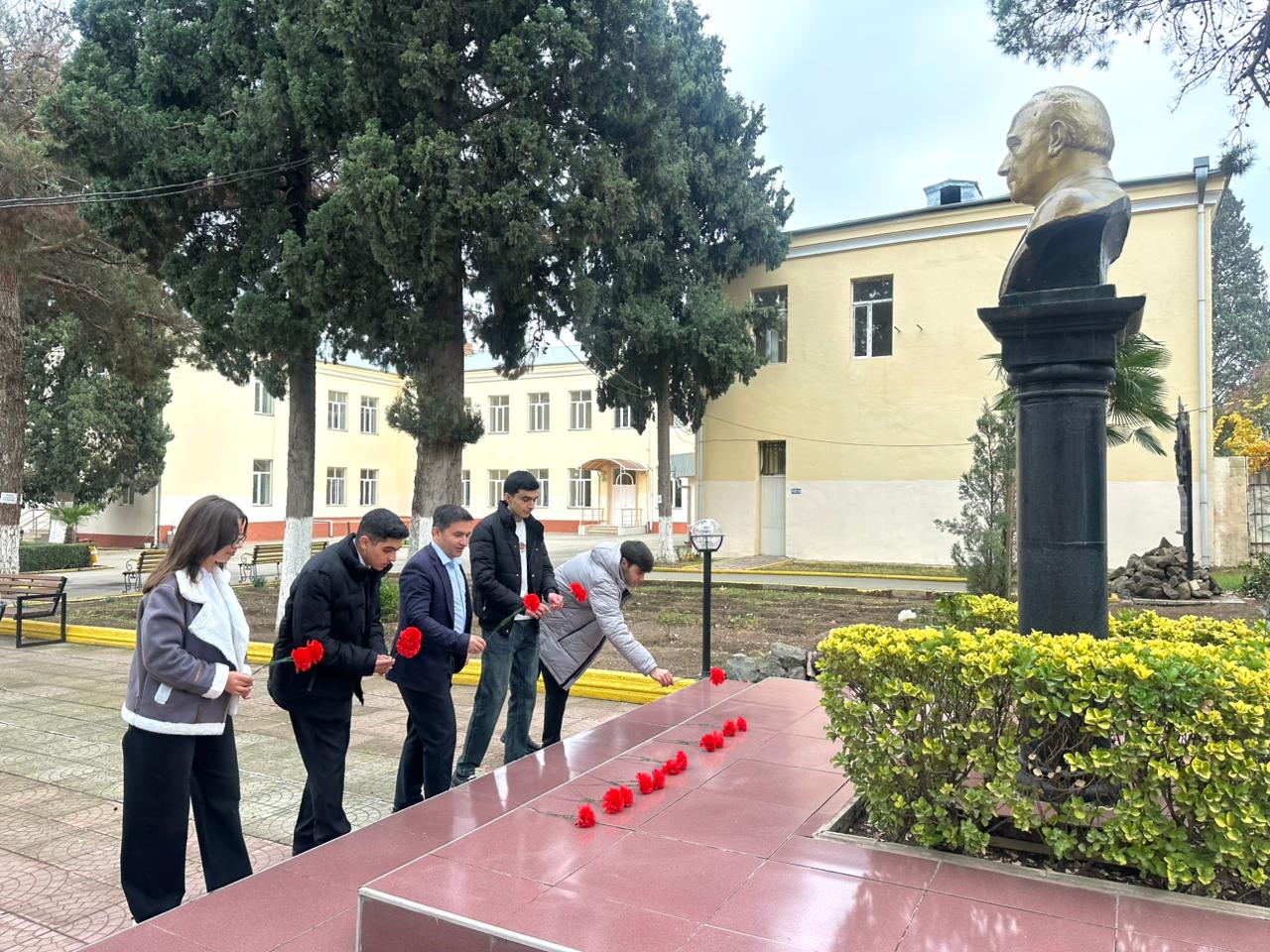 Bu gün İqtisadiyyat və idarəetmə fakültəsində dekan , dosent Məsim Abadov, kafedra müdirləri dosent Zakir Əhmədov, Əli Allahverdiyev və Afəddin Həmidov Umummilli lider Heydər Əliyevin monumenti qarşısına güllər qoyaraq onun ruhu qarşısında baş əydilər.