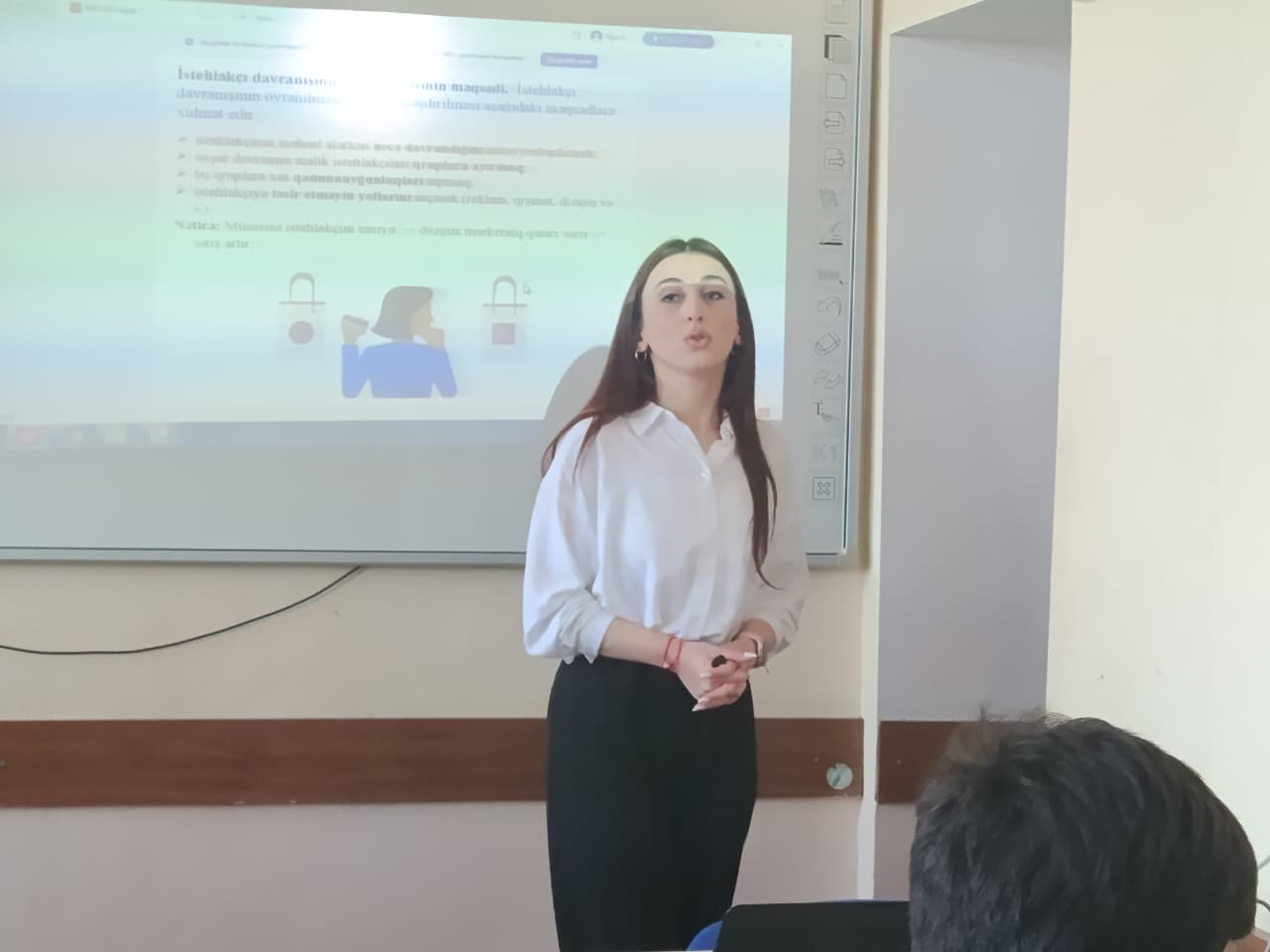 Fakültəmizin “Menecment və turizm işi” kafedrasının müəllimi Flora Nağıyeva “Marketinqin əsasları” fənnindən “Turizm işinin təşkili”, “Turizm bələdçiliyi” ixtisaslarının 2-ci kursunda təhsil alan tələbələr üçün “İstehlakçıların davranışı və modelləşdirilməsi” mövzusunda açıq dərs təşkil etmişdir. Dərsdə istehlakçıların bazar şəraitində qərarvermə mexanizmləri, seçim prinsipləri və onların iqtisadi modellər vasitəsilə izahı ətraflı şəkildə təqdim edilmişdir. Açıq dərs zamanı tələbələrə istehlakçı davranışının formalaşmasına təsir edən əsas amillər, faydalılıq anlayışı, büdcə məhdudiyyəti və istehlakçı seçimlərinin modelləşdirilməsi kimi mövzular izah edilmiş, mövzu üzrə praktik nümunələr təqdim olunmuşdur. İnteraktiv müzakirələr vasitəsilə tələbələrin mövzuya marağı artırılmış, onların iqtisadi düşüncə bacarıqlarının inkişafına xüsusi diqqət yetirilmişdir.