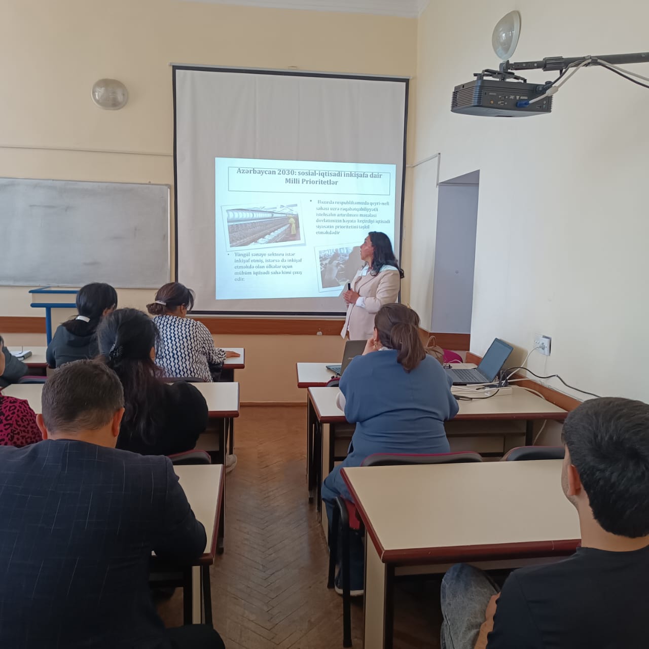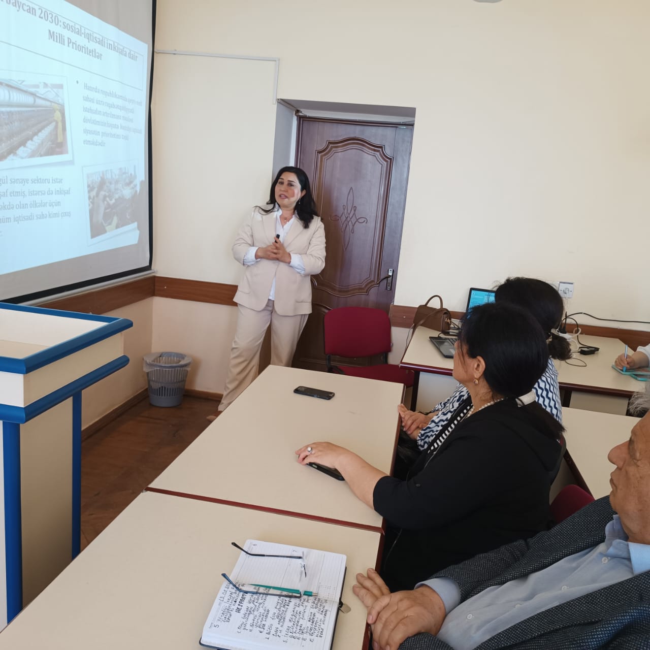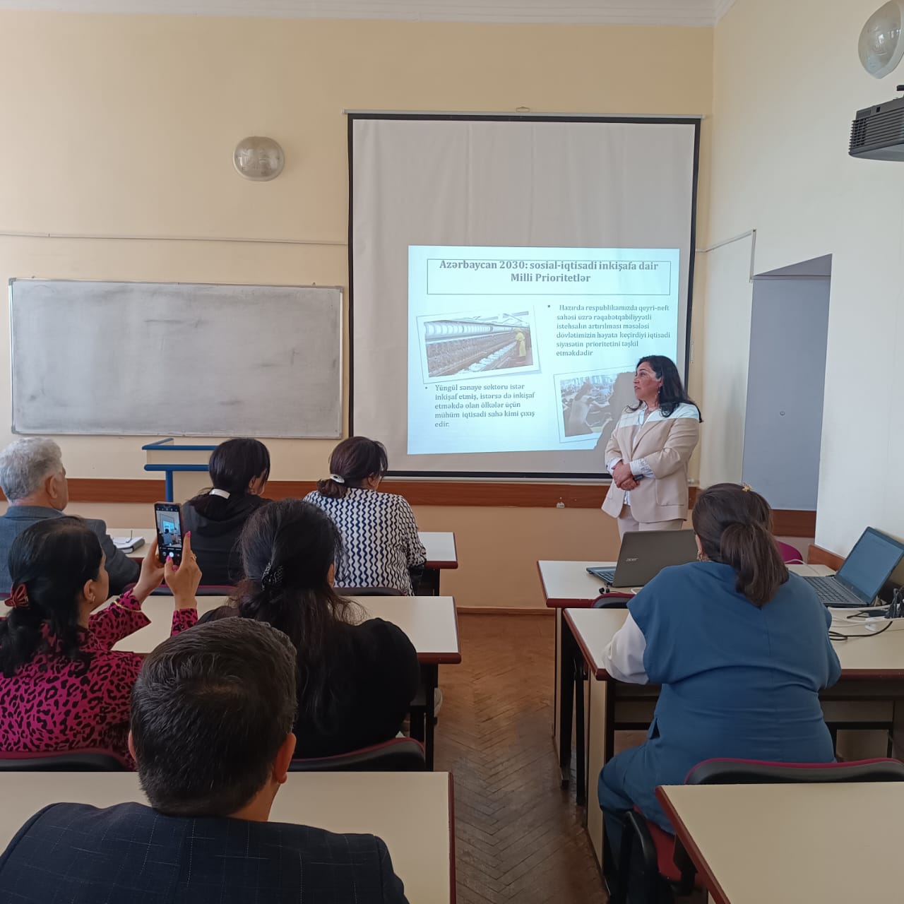 21 may 2025-ci il tarixində fakültədə İqtisadiyyat kafedrasının müəllimi Şəhla Abbasovanın “AZƏRBAYCANDA YÜNGÜL SƏNAYE SEKTORUNUN MÖVCUD VƏZIYYƏTINƏ TƏSIR EDƏN AMILLƏRIN QIYMƏTLƏNDIRILMƏSI” mövzusunda elmi-nəzəri seminarı keçirildi. Seminarda dekan , dosent Məsim Abadov, kafedra müdirləri və fakültəənin professor-müəllim heyəti iştirak etdilər. Mövzunun aktuallığı: