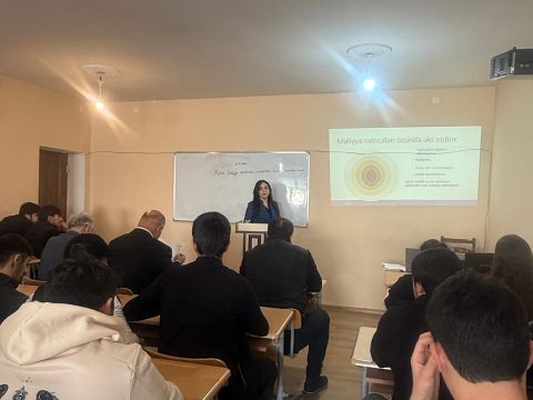 8 dekabr 2025-ci il tarixində İqtisadiyyat və idarəetmə fakültəsində Xarıcı dillər kafdrasının müəllimi Quliyeva Nigar Elçin qızının XDİAK fənnindən Present Perfect Tense mövzusunda açıq dərsi keçdi. Dərsdə dekan dosent Məsim Abadov, kafedra müdiri Zahirə Əliyeva və müəllimlər iştirak etdilər.