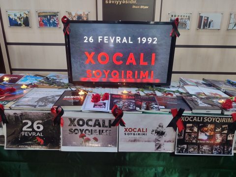 Gəncə Dövlət Universitetində Xocalı faciəsinin 34-cü ildönümünə həsr edilmiş anım tədbirindən öncə rektor Yusif Yusibov və professor-müəllim heyəti rəsm əsərlərinə və kitablardan ibarət guşəyə baxış keçiriblər. Anım tədbirində Ümummilli Lider Heydər Əliyevin, Xocalı soyqırımı qurbanlarının, eləcə də torpaqlarımızın azadlığı uğrunda canlarını verən şəhidlərimizin ruhu bir dəqiqəlik sükutla yad edilib. Xocalı soyqırımının dəhşətlərini özündə əks etdirən […]