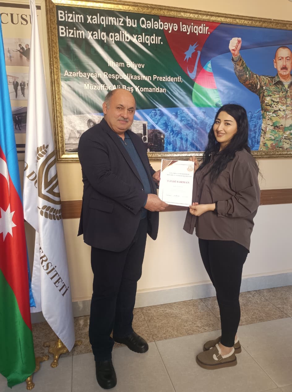 “İqtisadiyyat və idarəetmə” fakültəsində gənc müəllim, tələbə və əməkdaşların akademik, elmi və ictimai fəaliyyətlərinin stimullaşdırılması məqsədilə dekan dosent Məsim Abadov tərəfindən sertifikatla təltifetmə mərasimi həyata keçirilmişdir. Təltif olunma, gənclərin təhsil prosesində göstərdikləri fəallıq, təşəbbüskarlıq və əldə etdikləri nailiyyətlərin dəyərləndirilməsi baxımından mühüm əhəmiyyət daşıyır.