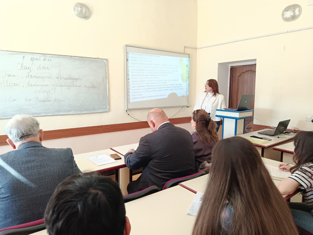 “İqtisadiyyat” kaferasının baş müəllimi Aynur Kərimovanın “İqtisadiyyat” ixtisasının III kurs tələbələrinə “Azərbaycan iqtisadiyyatı” fənni çərçivəsində təşkil olunan açıq dərsi “Azərbaycan iqtisadiyyatının regional inkişafı” mövzusuna həsr olunmuşdur. Açıq dərsdə fakültə dekanı, dosent Məsim Abadov, kafedra müdiri iqtisad elmləri üzrə fəlsəfə doktoru, dosent Zakir Əhmədov, fakültənin müəllim kollektivi iştirak etmişlər.