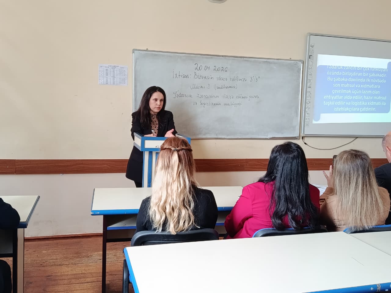 Qeyd olunub ki, tədarük zənciri logistikadan daha geniş bir anlayışdır. Açıq dərsdə tələbələrə məhsulun yaradılmasında iştirak edən bütün tərəflərin (təchizatçı, istehsalçı, distribütor, pərakəndə satıcı və müştəri) inteqrasiyası, həmçinin effektiv tədarük zənciri idarəetməsi xərcləri, xidmət keyfiyyəti, bazarda rəqabət üstünlüyü çatdırılmışdır.